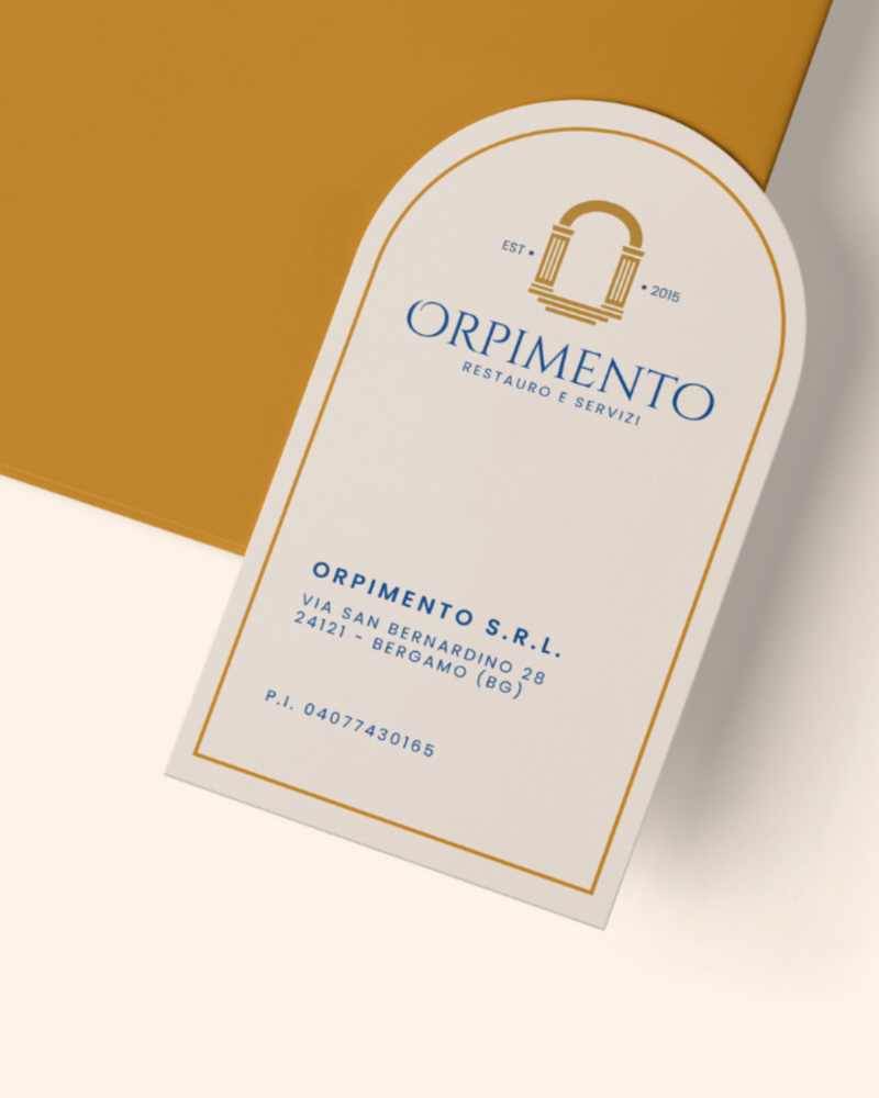 Orpimento SRL è un'impresa specializzata nella conservazione del patrimonio. La strategia di posizionamento si fonda su autorevolezza, tradizione e qualità. La sua caratteristiche è di essere un brand ombrello, ovvero contenere al suo interno altri brand.